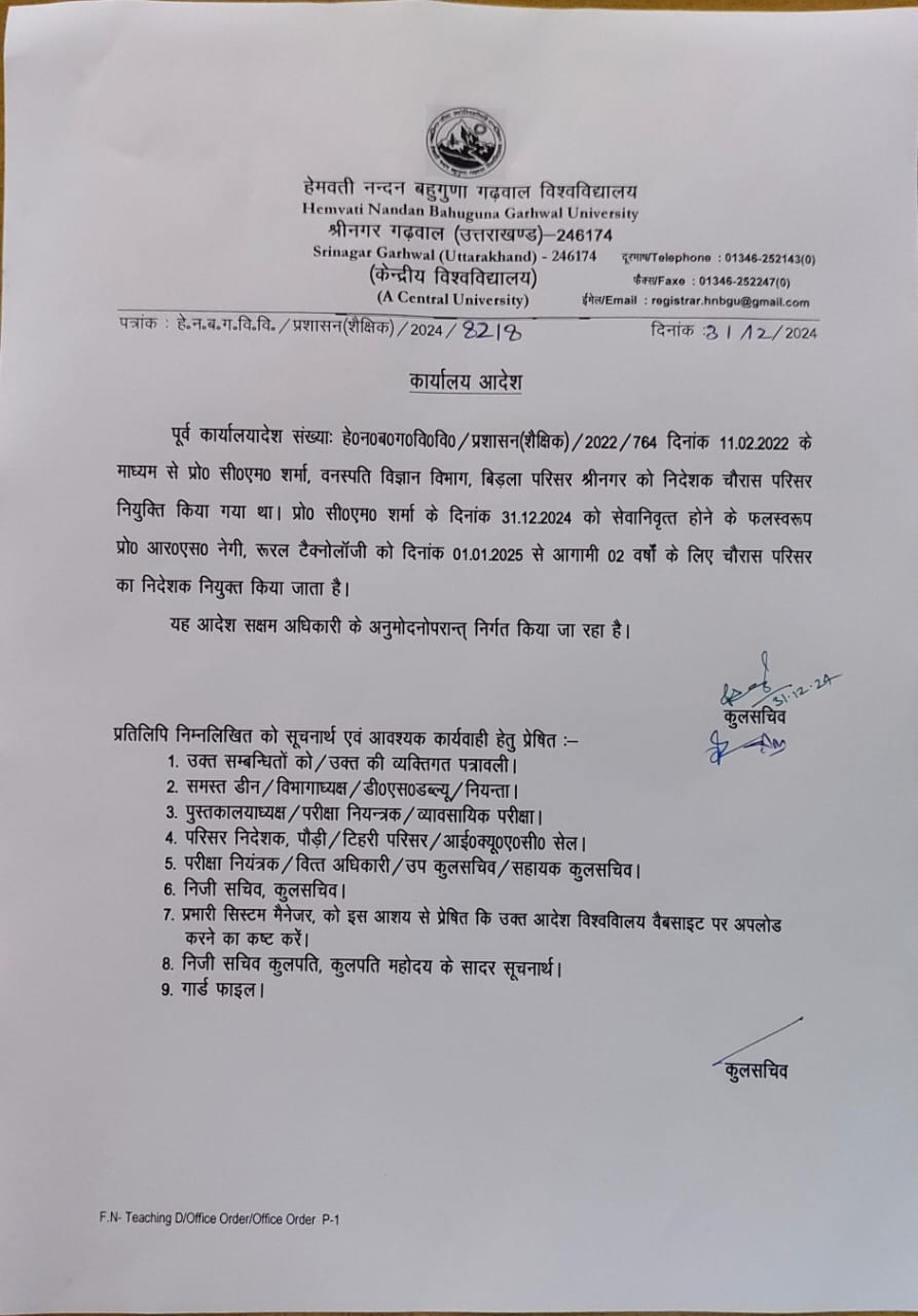 | 364 | Office Order No. 8218 (Appointment of Director Chauras Campus) | HNBGU/RO/2024/8218 | File (87.02 KB - English) |